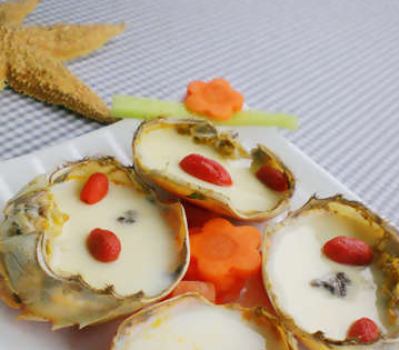 1、大閘蟹4個(gè),雞蛋2個(gè)約120克,鹽一小勺,溫開水240克,枸杞子10余粒,野山菇2朵。