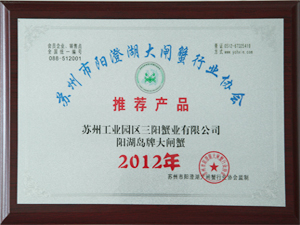 | 2012年蘇州市陽(yáng)澄湖大閘蟹行業(yè)協(xié)會(huì) 推薦產(chǎn)品 | 2012年獲產(chǎn)品暢銷(xiāo)獎(jiǎng) | ||