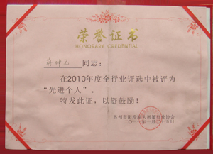 | 2010年獲行業(yè)個(gè)人 | 2011年獲 誠(chéng)信經(jīng)營(yíng)獎(jiǎng) | ||