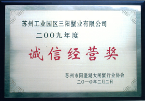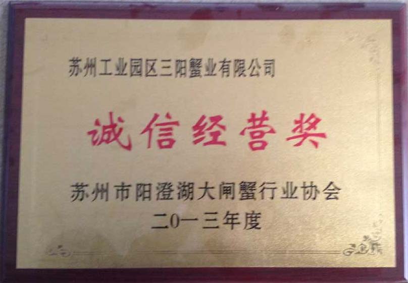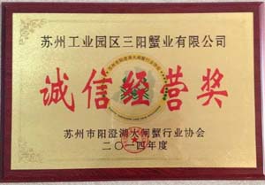 | 蘇州市陽(yáng)澄湖大閘蟹行業(yè)協(xié)會(huì)副會(huì)長(zhǎng) | 2012年獲3A企業(yè)信用等級(jí) | |||